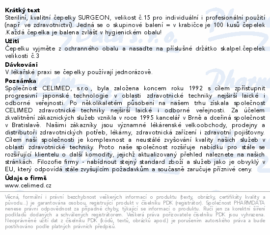 Steriliní, kvalitní čepelky SURGEON, velikost č.15 pro individuální i profesionální použití (např. ve zdravotnictví). Jedná se o skupinové balení = v krabičce je 100 kusů čepelek .Každá čepelka je balena zvlášť v hygienickém obalu!