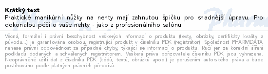Praktické manikúrní nůžky na nehty mají zahnutou špičku pro snadnější úpravu. Pro dokonalou péči o vaše nehty - jako z profesionálního salónu.