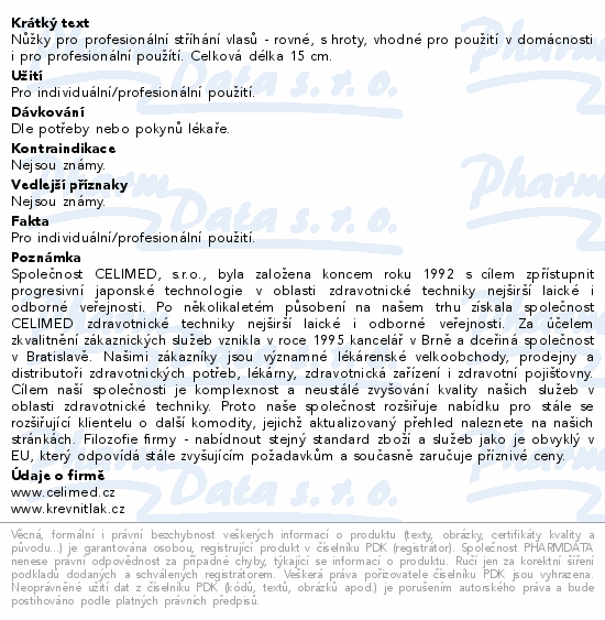 Nůžky SI-008-vlasy rov.hrot.15cm-CELIMED