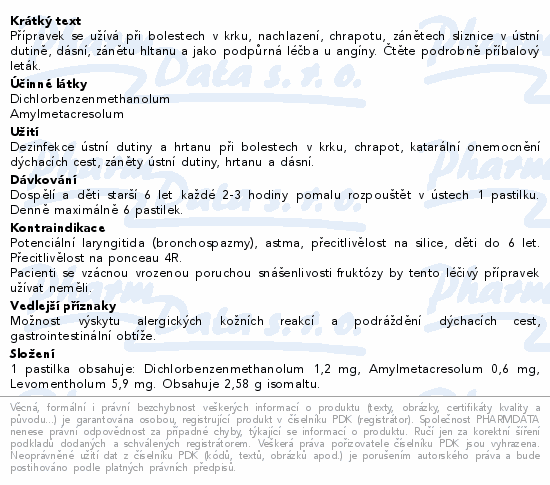 Přípravek se užívá při bolestech v krku, nachlazení, chrapotu, zánětech sliznice v ústní dutině, dásní, zánětu hltanu a jako podpůrná léčba u angíny. Čtěte pozorně příbalový leták.