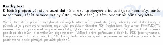 K léčbě projevů zánětu v ústní dutině a krku spojených s bolestí (jako např. afty, zánět nosohltanu, zánět sliznice dutiny ústní, zánět dásní). Čtěte pozorně příbalový leták.