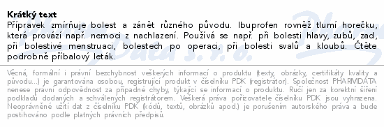 - Děti (6-12 let): 1 potahovaná tableta 2-3krát denně. U dětí s tělesnou hmotností do 30 kg nepřekračujte dávku 400 mg denně. Doporučený odstup mezi jednotlivými dávkami je 6-8 hodin.