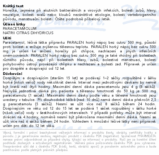Paralen hor.nap.bez cukru 500mg por.plv.