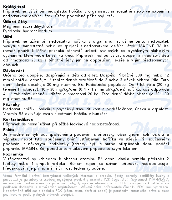 Přípravek se užívá při nedostatku hořčíku v organismu, samostatně nebo ve spojení s nedostatkem dalších látek. Čtěte pozorně příbalový leták.