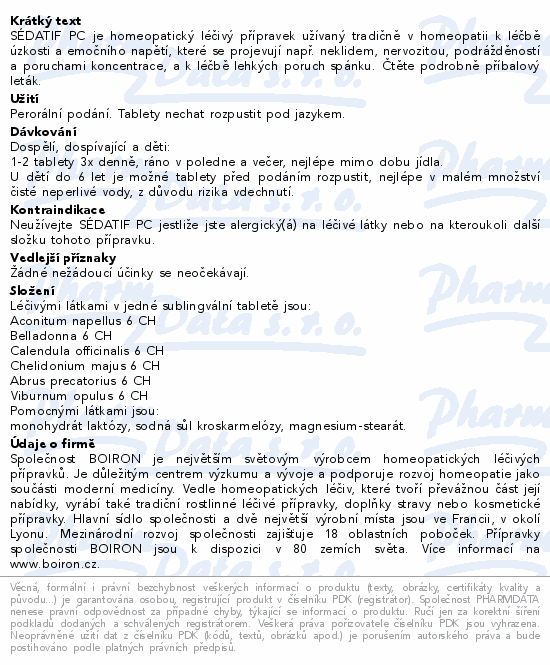 SÉDATIF PC je homeopatický léčivý přípravek užívaný tradičně v homeopatii k léčbě úzkosti a emočního napětí, které se projevují např. neklidem, nervozitou, podrážděností a poruchami koncentrace, a k léčbě lehkých poruch spánku. Čtěte pozorně příbalový leták.