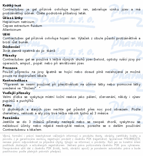 Contractubex je gel příznivě ovlivňuje hojení ran, zabraňuje vzniku jizev a má protizánětlivý účinek. Čtěte pozorně příbalový leták.