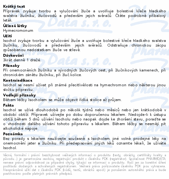 Přípravek zvyšuje tvorbu a vylučování žluče a uvolňuje bolestivé křeče hladkého svalstva žlučníku, žlučovodů a především jejich svěračů. Čtěte pozorně příbalový leták.