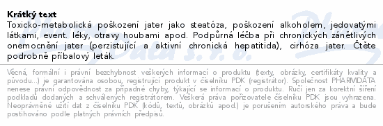 Toxicko-metabolická poškození jater jako steatóza, poškození alkoholem, jedovatými látkami, event. léky, otravy houbami apod. Podpůrná léčba při chronických zánětlivých onemocnění jater (perzistující a aktivní chronická hepatitida), cirhóza jater. Čtěte pozorně příbalový leták.