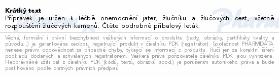 Přípravek je určen k léčbě onemocnění jater, žlučníku a žlučových cest, včetně rozpouštění žlučových kamenů. Čtěte pozorně příbalový leták.