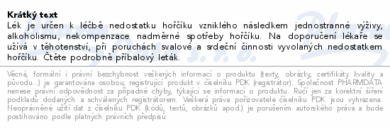 Lék je určen k léčbě nedostatku hořčíku vzniklého následkem jednostranné výživy, alkoholismu, nekompenzace nadměrné spotřeby hořčíku. Na doporučení lékaře se užívá v těhotenství, při poruchách svalové a srdeční činnosti vyvolaných nedostatkem hořčíku. Čtěte pozorně příbalový leták.
