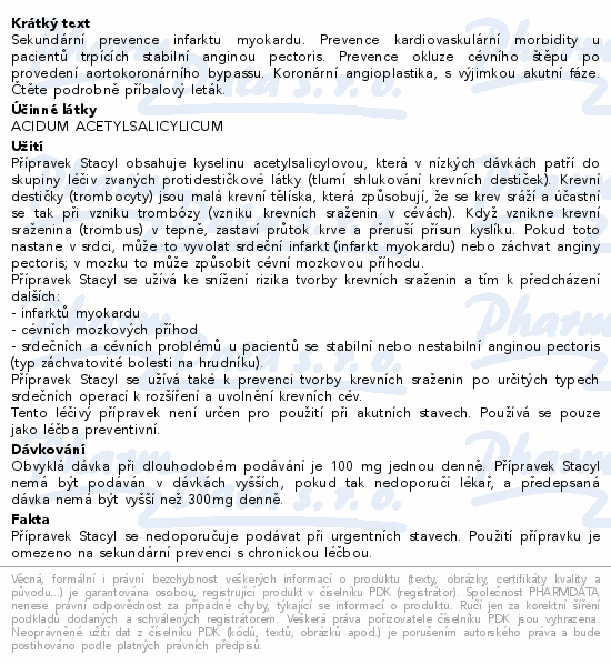 Sekundární prevence infarktu myokardu. Prevence kardiovaskulární morbidity u pacientů trpících stabilní anginou pectoris. Prevence okluze cévního štěpu po provedení aortokoronárního bypassu. Koronární angioplastika, s výjimkou akutní fáze. Čtěte pozorně příbalový leták.