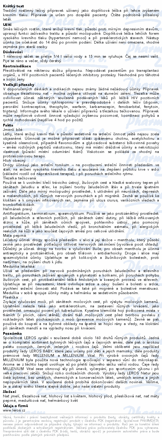 Tradiční rostlinný léčivý přípravek užívaný jako doplňková léčba při lehce zvýšeném krevním tlaku. Přípravek je určen pro dospělé pacienty. Čtěte pozorně příbalový leták.