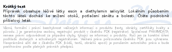 Přípravek obsahuje léčivé látky escin a diethylamin salicylát. Lokálním působením těchto látek dochází ke snížení otoků, potlačení zánětu a bolesti. Čtěte pozorně příbalový leták.