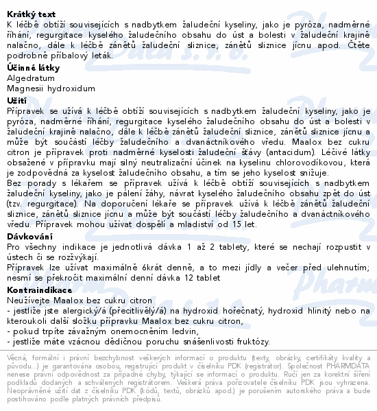 K léčbě obtíží souvisejících s nadbytkem žaludeční kyseliny, jako je pyróza, nadměrné říhání, regurgitace kyselého žaludečního obsahu do úst a bolesti v žaludeční krajině nalačno, dále k léčbě zánětů žaludeční sliznice, zánětů sliznice jícnu apod. Čtěte pozorně příbalový leták.