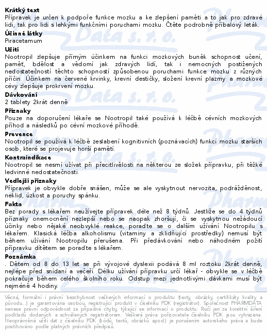 Přípravek je určen k podpoře funkce mozku a ke zlepšení paměti a to jak pro zdravé lidi, tak pro lidi s lehkými funkčními poruchami mozku. Čtěte pozorně příbalový leták.
