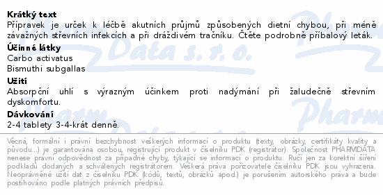 Přípravek je urček k léčbě akutních průjmů způsobených dietní chybou, při méně závažných střevních infekcích a při dráždivém tračníku. Čtěte pozorně příbalový leták.