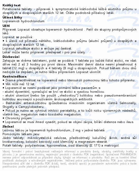 Potahované tablety - přípravek k symptomatické krátkodobé léčbě akutního průjmu u dospělých a dospívajících starších 12 let. Čtěte pozorně příbalový leták.