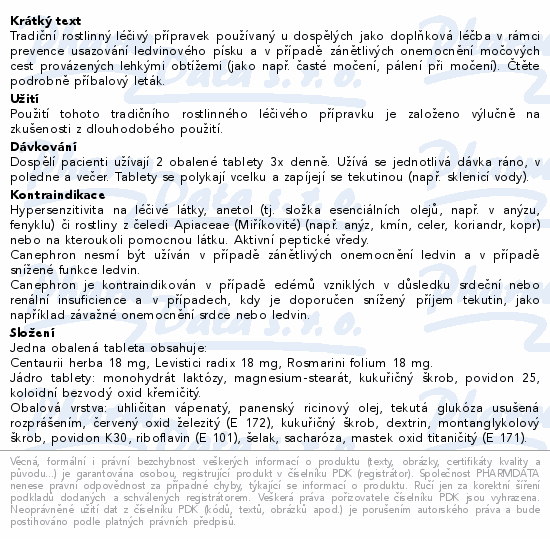 Tradiční rostlinný léčivý přípravek používaný u dospělých jako doplňková léčba v rámci prevence usazování ledvinového písku a v případě zánětlivých onemocnění močových cest provázených lehkými obtížemi (jako např. časté močení, pálení při močení). Čtěte pozorně příbalový leták.