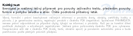 Iberogast je rostlinný léčivý přípravek pro poruchy zažívacího traktu, především poruchy funkce a pohybu žaludku a střev. Čtěte pozorně příbalový leták.