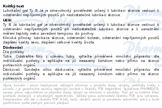 Ty&Já® Lubrikační gel neparfémovaný je zdravotnický prostředek určený k lubrikaci sliznice vedoucí k: