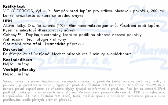 Vichy Dercos Šampon proti lupům pro citlivou vlasovou pokožku působí proti lupům a nepříjemným pocitům vlasové pokožky. Pro muže a ženy, kteří mají zároveň lupy a citlivou vlasovou pokožku.