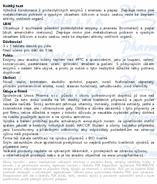 Uniospharma Bromelain+Papaya 60mg tbl.90