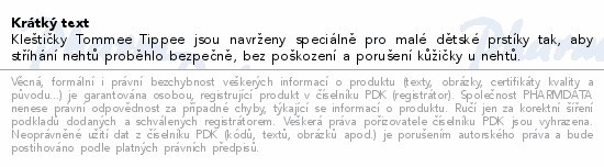 Kleštičky Tommee Tippee jsou navrženy speciálně pro malé dětské prstíky tak, aby stříhání nehtů proběhlo bezpečně, bez poškození a porušení kůžičky u nehtů.