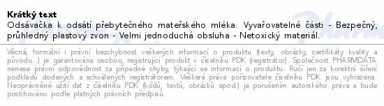 Odsávačka k odsátí přebytečného mateřského mléka. Vyvařovatelné části - Bezpečný, průhledný plastový zvon - Velmi jednoduchá obsluha - Netoxický materiál.