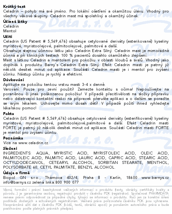 Celadrin – pohyb má své jméno. Pro lokální ošetření a okamžitou úlevu. Vhodný pro všechny věkové skupiny. Celadrin mast má spolehlivý a okamžitý účinek.