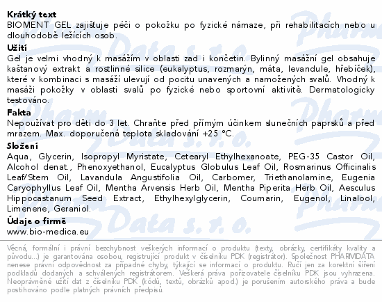BIOMENT bylinny masazni gel 100ml