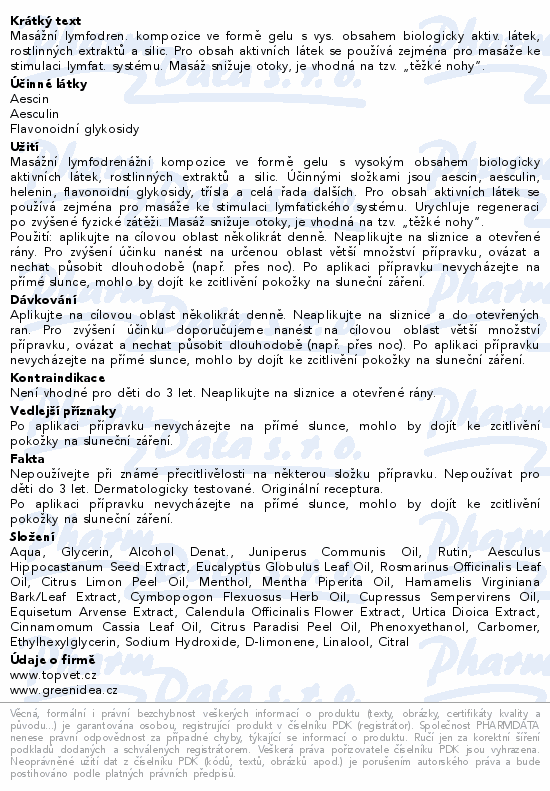 Masážní lymfodren. kompozice ve formě gelu s vys. obsahem biologicky aktiv. látek, rostlinných extraktů a silic. Pro obsah aktivních látek se používá zejména pro masáže ke stimulaci lymfat. systému. Masáž snižuje otoky, je vhodná na tzv. „těžké nohy“.