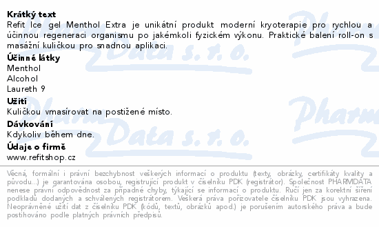Refit Ice gel Menthol Extra je unikátní produkt moderní kryoterapie pro rychlou a účinnou regeneraci organismu po jakémkoli fyzickém výkonu. Praktické balení roll-on s masážní kuličkou pro snadnou aplikaci.
