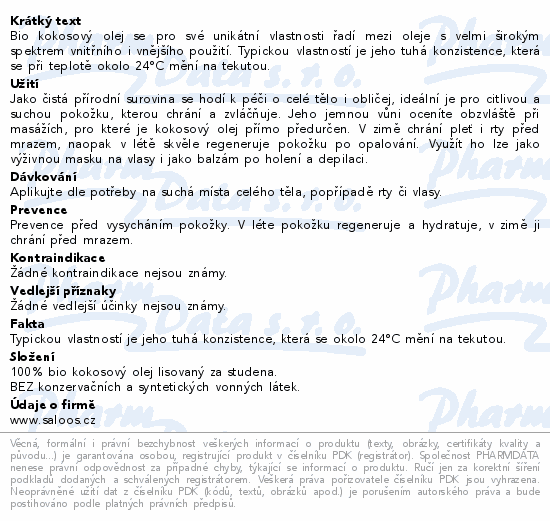 Bio kokosový olej se pro své unikátní vlastnosti řadí mezi oleje s velmi širokým spektrem vnitřního i vnějšího použití. Typickou vlastností je jeho tuhá konzistence, která se při teplotě okolo 24°C mění na tekutou.