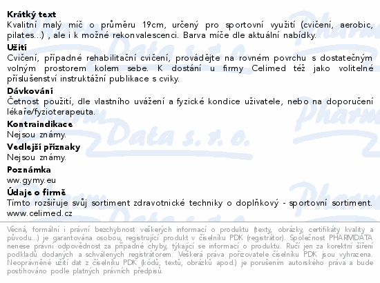 Kvalitní malý míč o průměru 19cm, určený pro sportovní využití (cvičení, aerobic, pilates...) , ale i k možné rekonvalescenci. Barva míče dle aktuální nabídky.