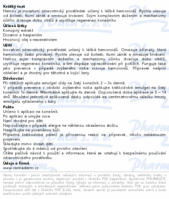 Hemox je inovativní zdravotnický prostředek určený k léčbě hemoroidů. Rychle ulevuje od bolesti, tlumí zánět a omezuje krvácení. Svým komplexním složením a mechanizmy účinku zkracuje dobu obtíží a urychluje regeneraci konečníku.