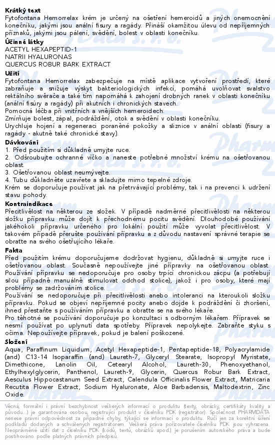 Fytofontana Hemorrelax krém 30 g je zdravotnický prostředek určený k péči o pokožku v oblasti konečníku při výskytu hemoroidů nebo jiných nepříjemných projevů, jako je svědění, pálení, otok či podráždění. Kombinuje rostlinné extrakty s moderními technologiemi s cílem poskytnout úlevu a podporu regenerace citlivé perianální oblasti.