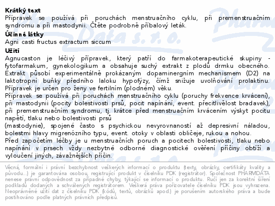 Přípravek se používá při poruchách menstruačního cyklu, při premenstruačním syndromu a při mastodynii. Čtěte pozorně příbalový leták.