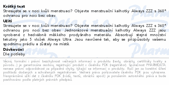 Stresujete se v noci kvůli menstruaci? Objevte menstruační kalhotky Always ZZZ s 360° ochranou pro noci bez obav.