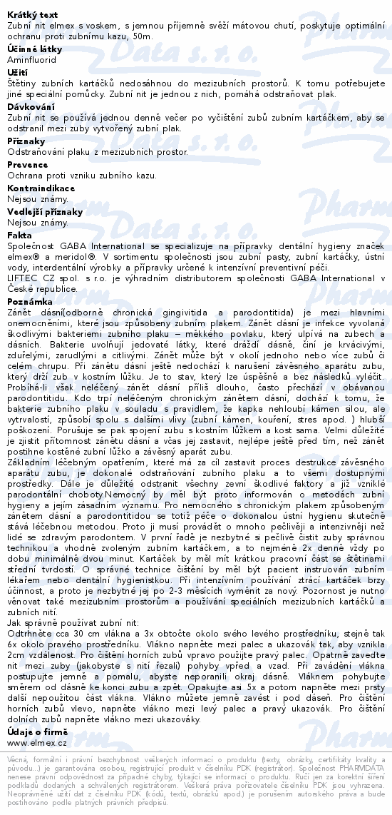 Zubní nit elmex s voskem, s jemnou příjemně svěží mátovou chutí, poskytuje optimální ochranu proti zubnímu kazu, 50m.