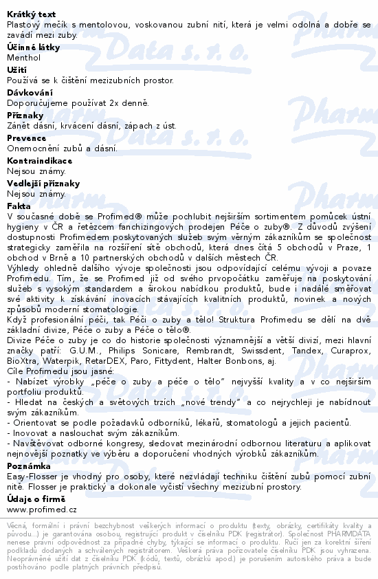 Plastový mečík s mentolovou, voskovanou zubní nití, která je velmi odolná a dobře se zavádí mezi zuby.