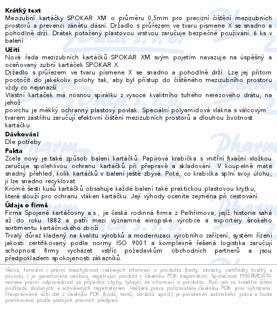 Mezizubní kartáčky SPOKAR XM o průměru 0,5mm pro precizní čištění mezizubních prostorů a prevenci zánětu dásní. Držadlo s průřezem ve tvaru písmene X se snadno a pohodlně drží. Drátek potažený plastovou vrstvou zaručuje bezpečné používání. 6 ks v balení.