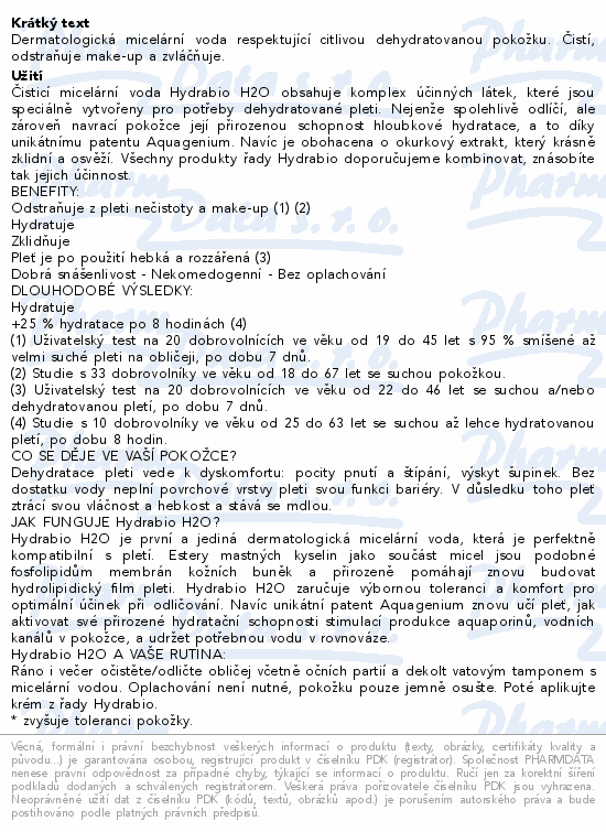 BIODERMA Hydrabio H2O 500 ml je hydratační micelární voda odstraňující make-up. Micely obsažené v jejím složení odstraní make-up z obličeje i očí v jednom kroku.