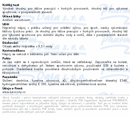 Výrobek vhodný pro těžce pracující v horkých provozech, vhodný též pro výkonné sportovce, v pooperačních stavech.