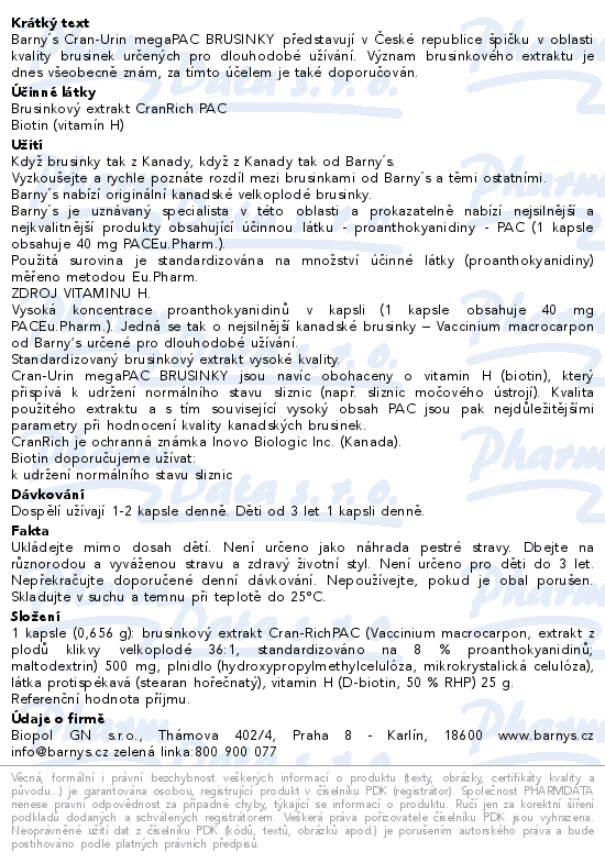 Barnys Cran-Urin megaPAC brusinky cps.60