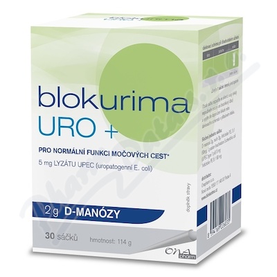 Blokurima URO+ je doplněk stravy určený k podpoře normální funkce močového měchýře a močových cest, vhodný pro pravidelné i dlouhodobější užívání. Obsahuje D-manózu, inulin, výtažek z artyčoku a lyzát bakterie E.coli.