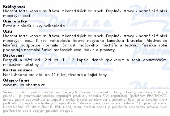 Urosept forte kapsle se šťávou z kanadských brusinek. Doplněk stravy k normální funkci močových cest.