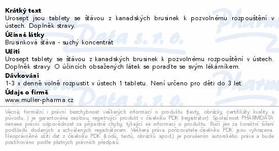 Urosept jsou tablety se šťávou z kanadských brusinek k pozvolnému rozpouštění v ústech. Doplněk stravy.
