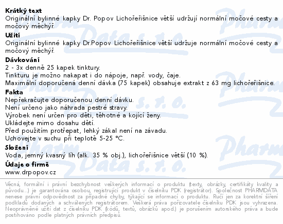 Originální bylinné kapky Dr. Popov Lichořeřišnice větší udržují normální močové cesty a močový měchýř.