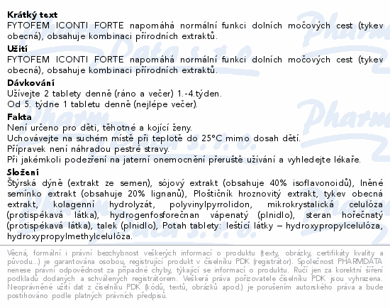 FYTOFEM ICONTI FORTE pomáhá normální funkci dolních močových cest (tykev obecná), obsahuje kombinaci přírodních extraktů.