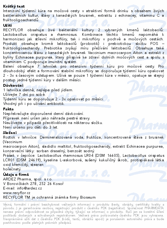 Intenzivní týdenní kúra na močové cesty v atraktivní formě drinku s obsahem živých bakteriálních kultur, šťávy z kanadských brusinek, extraktu z echinacey, vitaminu C a fruktooligoacharidů.